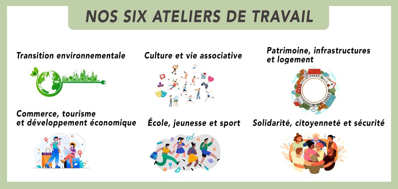 Depuis quatre mois, nous nous réunissons chaque semaine pour travailler concrètement sur les thématiques qui font vivre notre village : le social, l’école, le sport, la sécurité, les associations, les déplacements, le logement, les commerces et la vie économique, le tourisme, l’urbanisme, l’écologie, la culture, la vie citoyenne et bien d’autres projets.