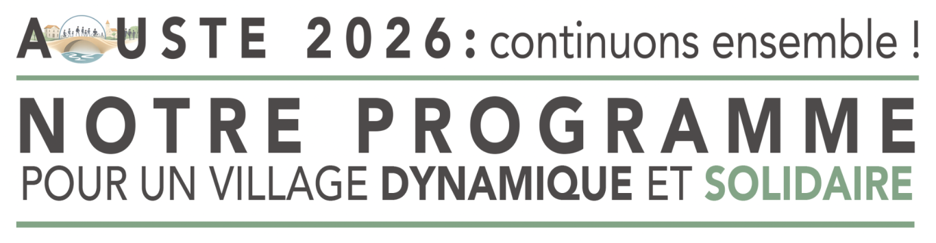 Avec vous, Aoustoises et Aoustois, nous souhaitons coconstruire un village accueillant, solidaire et dynamique, qui nous rassemble.